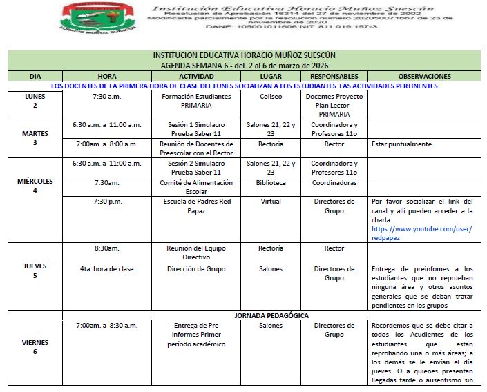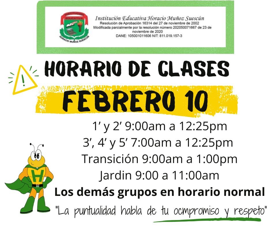 Se informa a la comunidad educativa el regreso a las labores académicas en la institución Educativa Horacio Muñoz Suescun