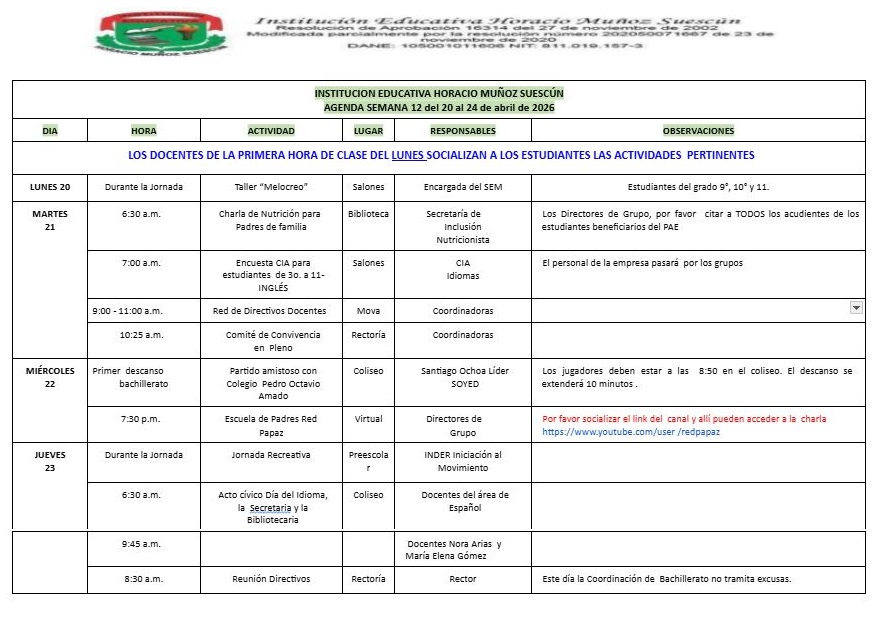 El 13 de marzo del 2026 se realizó en la I. E. Horacio Muñoz Suecún el evento de elección de los estudiantes a ocupar los cargos de personería, contraloría y líder deportivo.