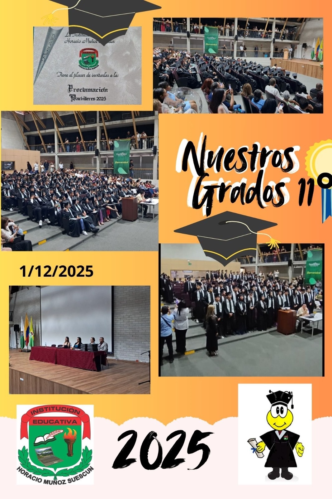 El miércoles 12 de junio se realizó la ceremonia tradicional en la I. E. Horacio Muñoz Suescún donde los estudiantes de grado 11 le hacen entrega de los símbolos institucionales a los estudiantes de grado 10, este evento se realizó en el coliseo.
